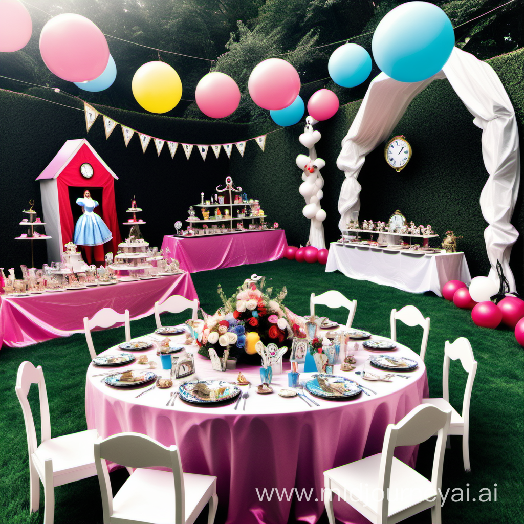 For Decor, visit your favorite social media and website sites for inspiration to build your theme, then blend it throughout – from your invite, to table tops to entertainment.  For our Alice In Wonderland party we had a magician dressed like the infamous white rabbit interact with guests to set a playful mood!